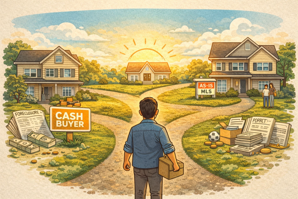 Selling as-is means the property goes to market in its current condition — no repairs, no staging. You can sell as-is through a traditional MLS listing, attracting both investors and owner-occupant buyers who want to renovate on their own terms. Wider buyer pool than a direct cash sale, but longer timeline and more deal-fall-through risk.